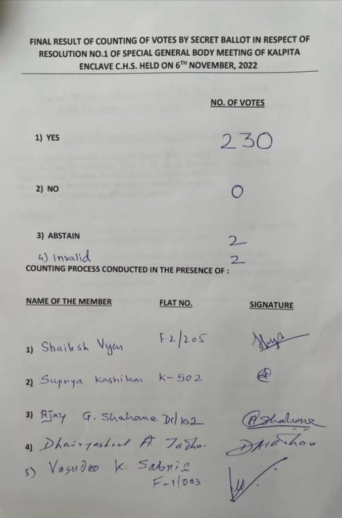 Home About Managing Committee Redevelopment Committee Notices, Minutes & Documents Gallery X Gallery 6th November, 2022 'Special General Body Meeting of Kalpita Enclave CHS'